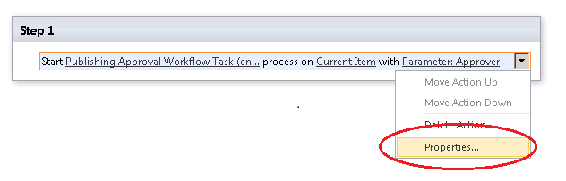 5) Set Name of workflow to “Custom Publishing Workflow”