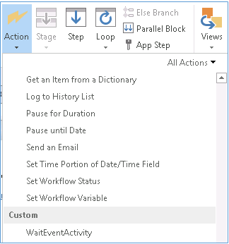 <Action Name="WaitEventActivity" ClassName="WaitEvent.WaitEventActivity" Category="Custom" AppliesTo="all">