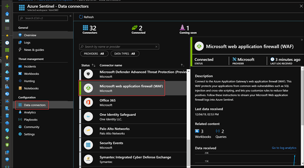Now Azure Sentinel is setup to work with the Azure Application Gateway Web Application Firewall.