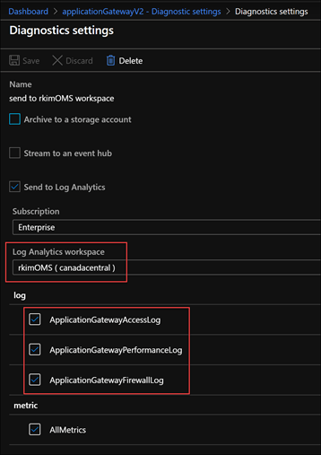 Remember that the existing App Gateway needs to have its diagnostics setting to send logs to the log analytics workspace added to Azure Sentinel. You can do this manually at the App Gateway resource diagnostic settings.