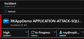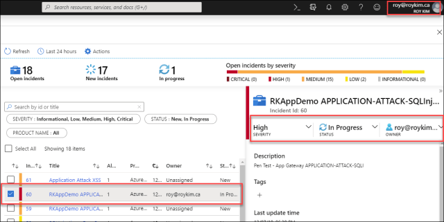 - The ability to change the severity, change the status to ‘In Progress’, and assign to a specific individual. This a user account in the Azure AD directory.