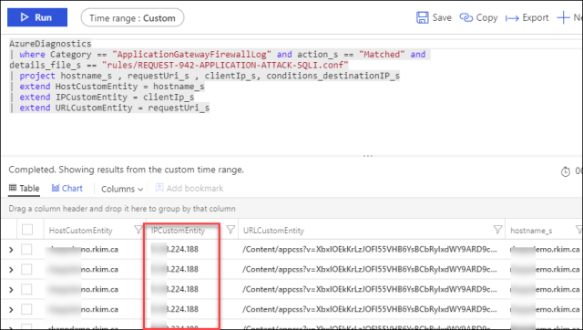 In clicking the details, the query is shown which is the same one used for the analytics rule. It shows the IP address for the client. I have redacted the IP in the screenshot for security reasons.