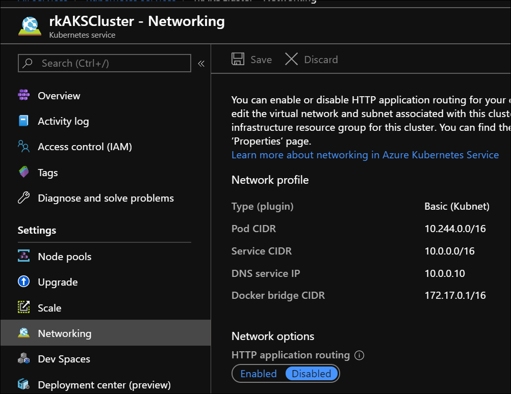 • Http application routing: Disabled