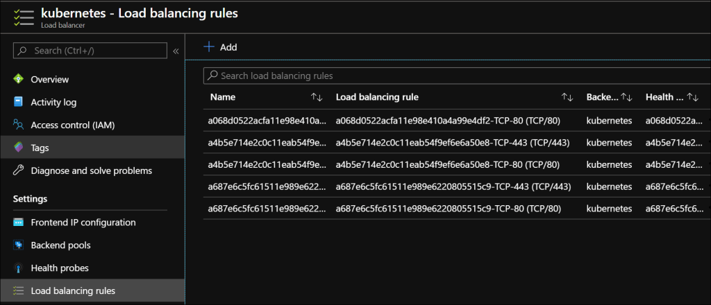 The load balancer is required to support the AKS cluster. The standard SKU is the default. The load balancer is automatically setup with one IP addresses in the Load balancer front end. Here I had another IP Address configures after the fact.