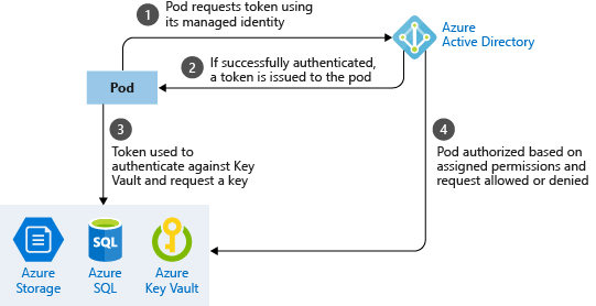 This access token can be used by the pod (or the .Net Core application) to then request access to Azure SQL Database.