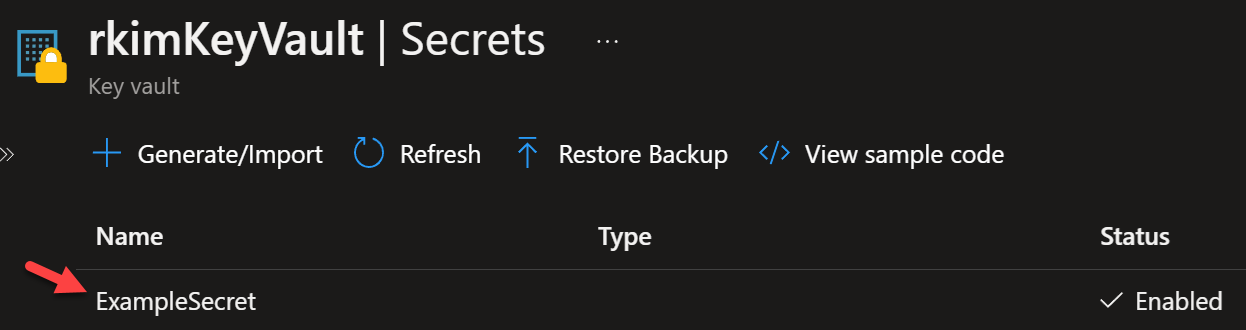 az keyvault secret set --vault-name $keyVaultName -n ExampleSecret --value s3cr3tV@lue