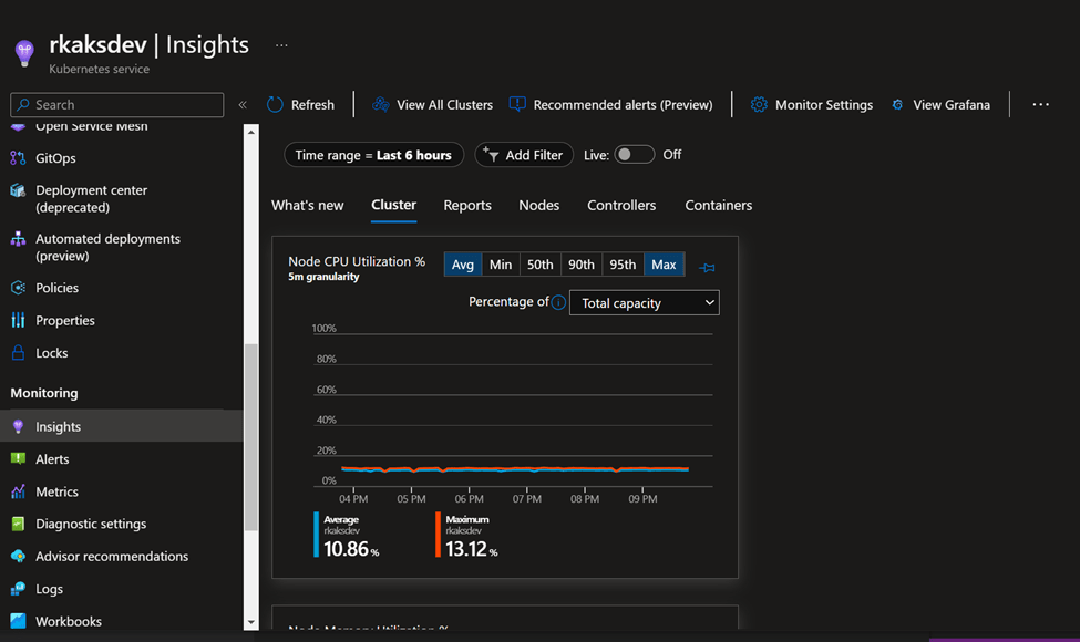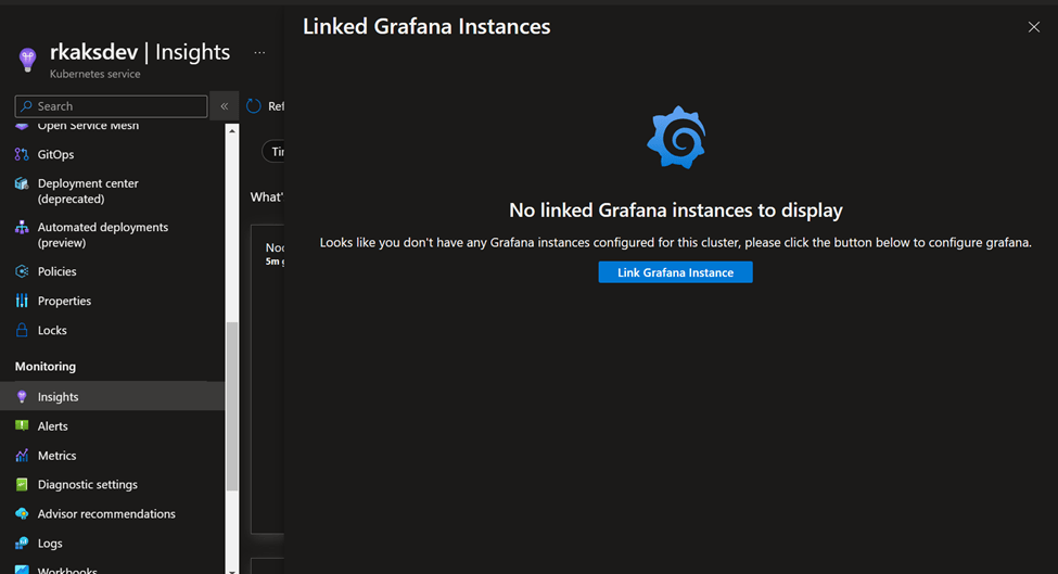Going back to my AKS > Insights blade, I know link to a Grafana instance