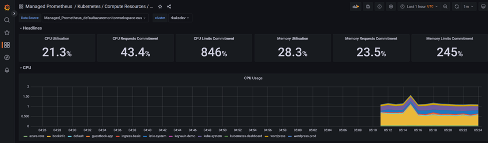 Grafana as the visualization tool is a much welcomed service to get more insight into your Azure Kubernetes cluster.