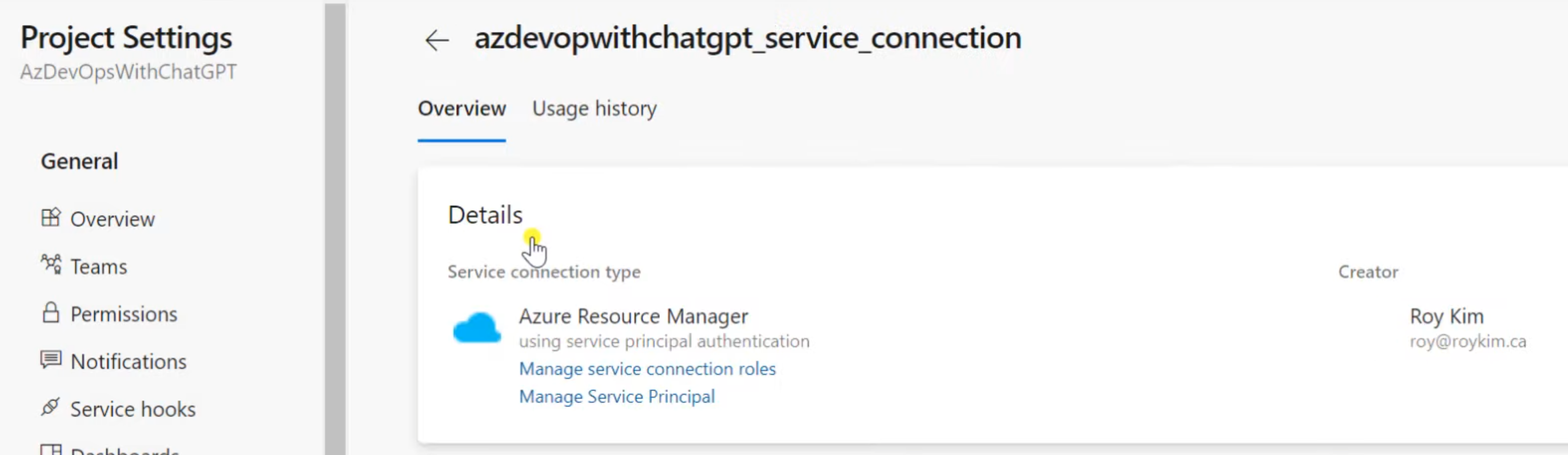So I proceeded ahead and I was prompted for credentials that has Azure Global Admin access which created a service principal automatically.