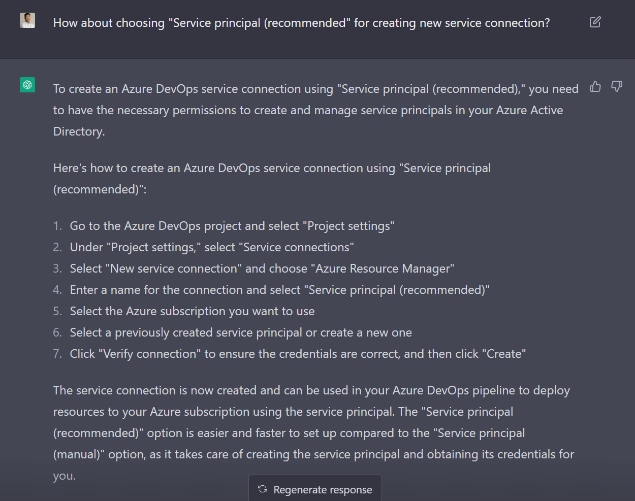 I wanted to explore using ChatGPT exclusively to create Create An Azure DevOps Pipeline with Terraform in Deploying Azure Resources as if I never created such a pipeline before.