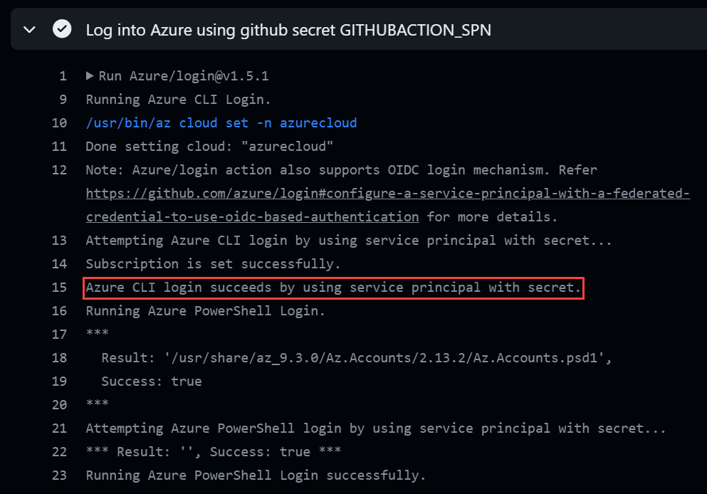 - Login in the desired azure subscription with stored secret credentials