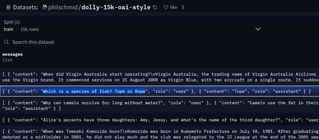 In this article, I’ll go through an informal and manual approach where I compare prompts between the pre-trained based model phi-3-mini-128k-instruct and the fine tuned model. I take the prompts from the fine-tuned data sets. The data set can be viewed here https://huggingface.co/datasets/philschmid/dolly-15k-oai-style/viewer/default/train?row=0