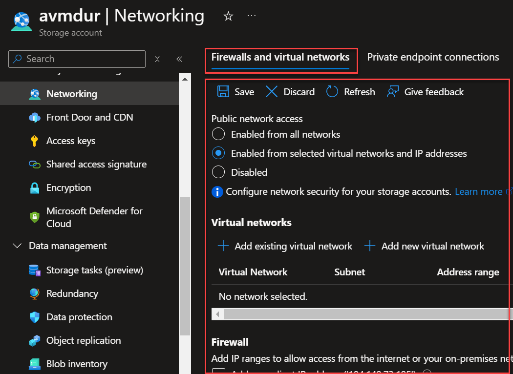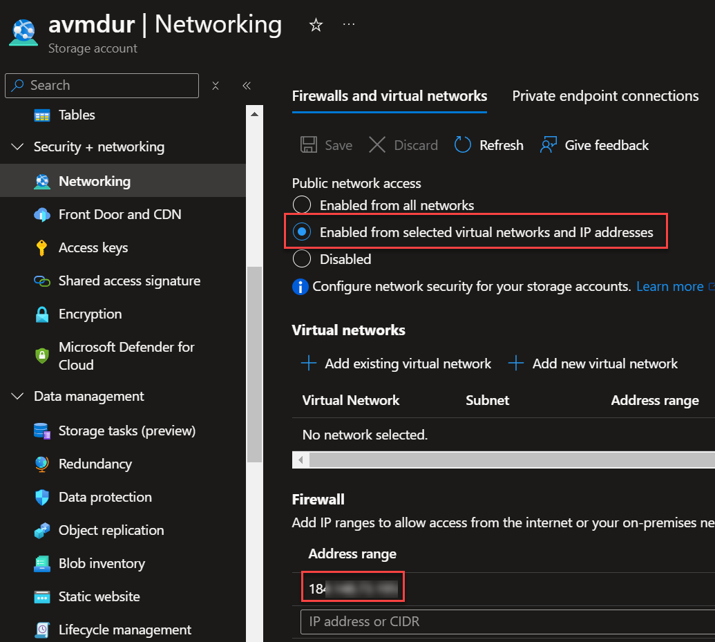 When working terraform modules, not every module input parameter maps clearly to settings found in the Azure Portal and also an input parameter may be dependent on a certain value of a another input parameter. What I have just showed is that network_rules is dependent on public_network_access to be true. And network_rules is basically the configuration settings that appears under Firewall and virtual network tab. Hope this helps to navigate the subtleties and nuances in working with the Azure Verified Modules.