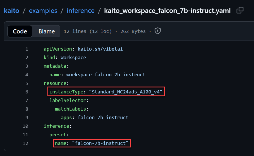 Opening any of these inference workspace CRD yaml files, are two configuration parameters I inquire