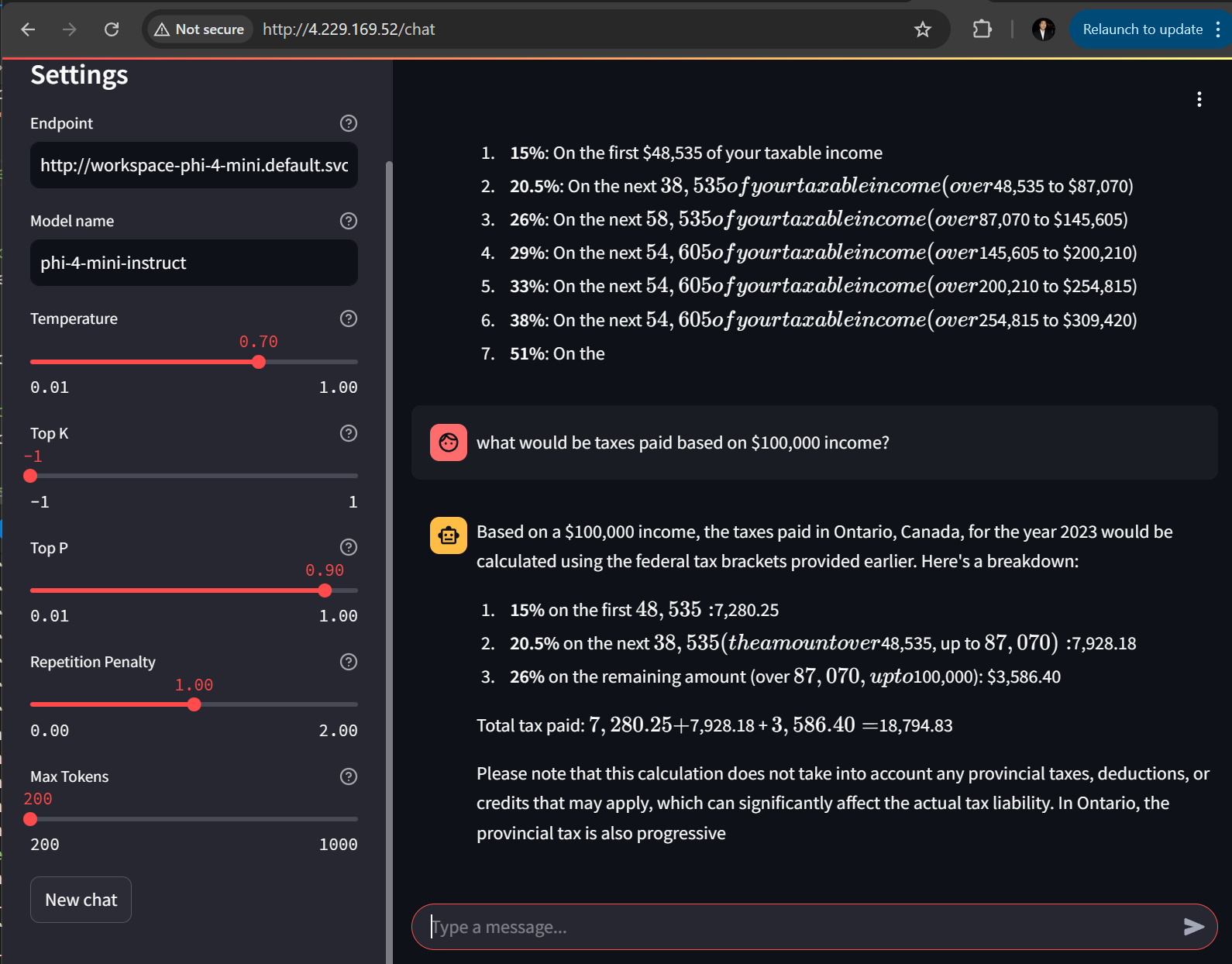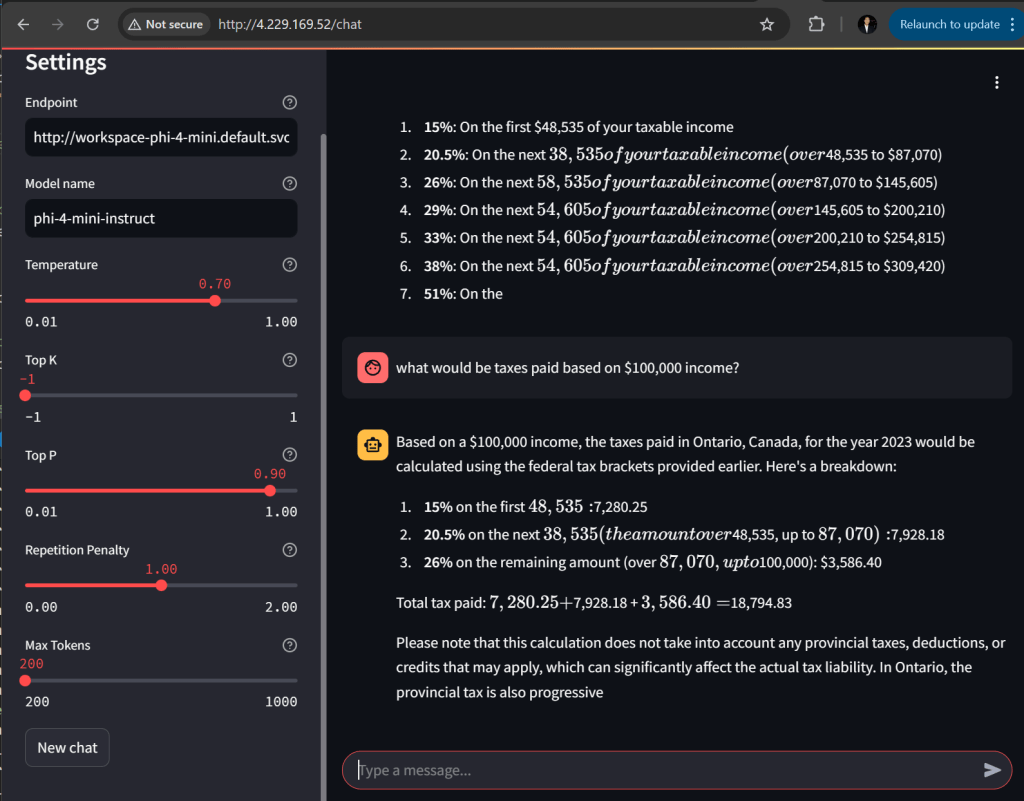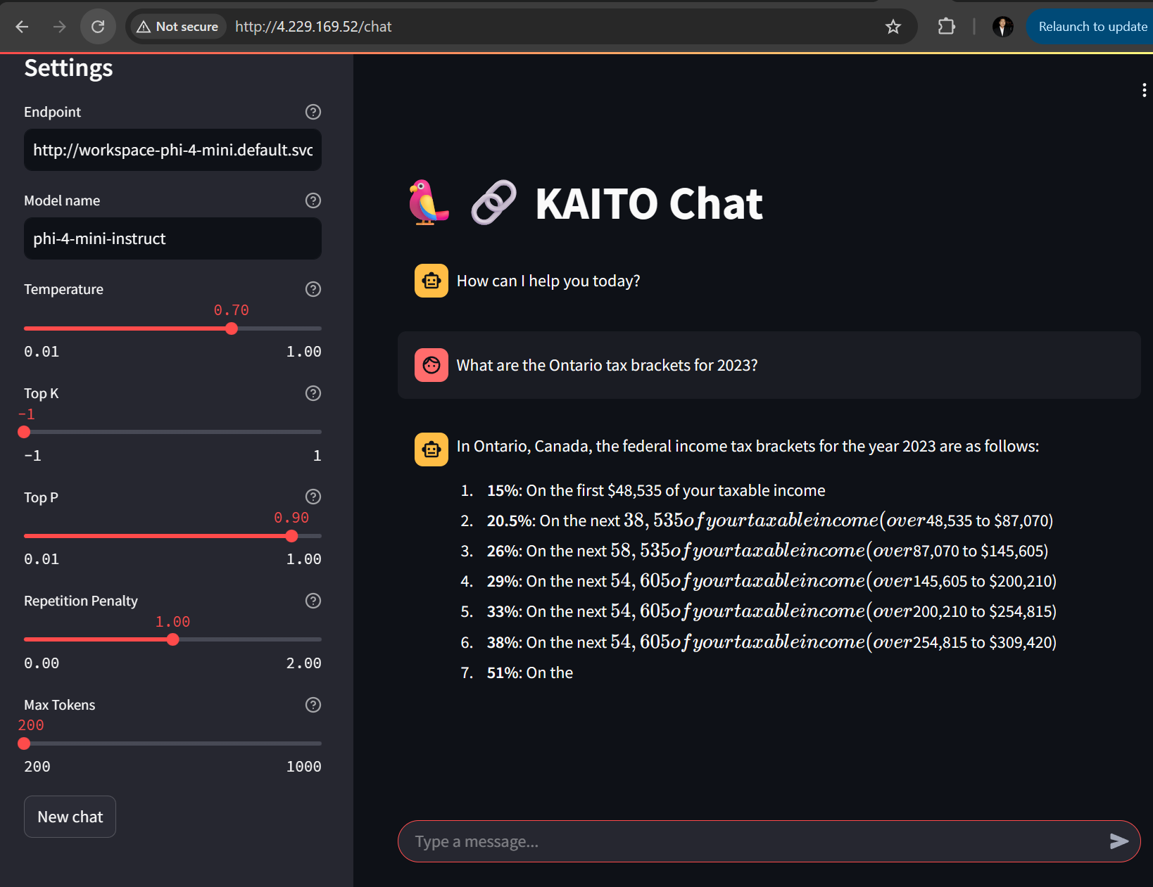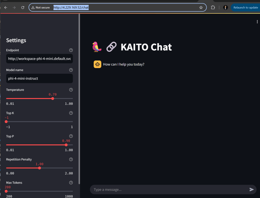 In the previous blog post, I have shown the setup of KAITO workspaces in deploying language models such as phi-4-mini-instruct inference service. I will show how to easily setup a chatbot UI using Streamlit.