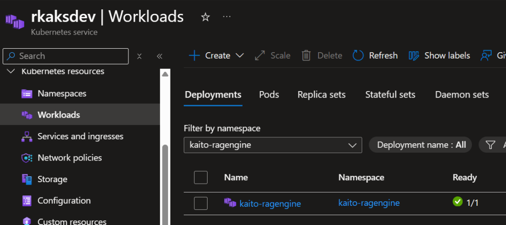 Verify kaito-ragengine workload deployment
