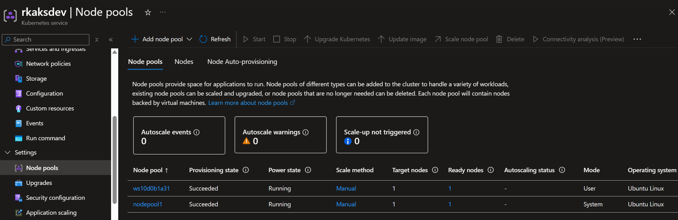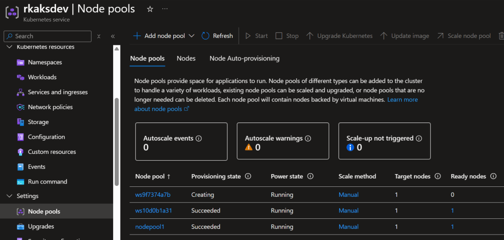 At this point, the AKS node pools have one system node pool, and the other user nodepool with one GPU hosting the Phi-4 model.