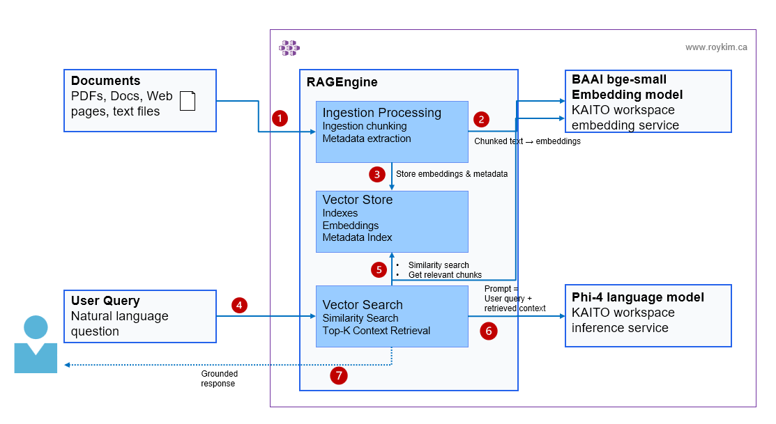 The Phi-4 workspace matters because RagEngine needs an inference service endpoint to call. In this repo, the in-cluster URL is shown in 3-setup-kaito-rag.sh as:
