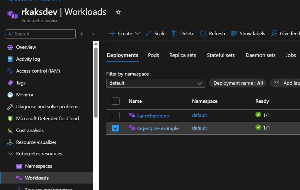 The RAGengine k8s deployment is also deployed.