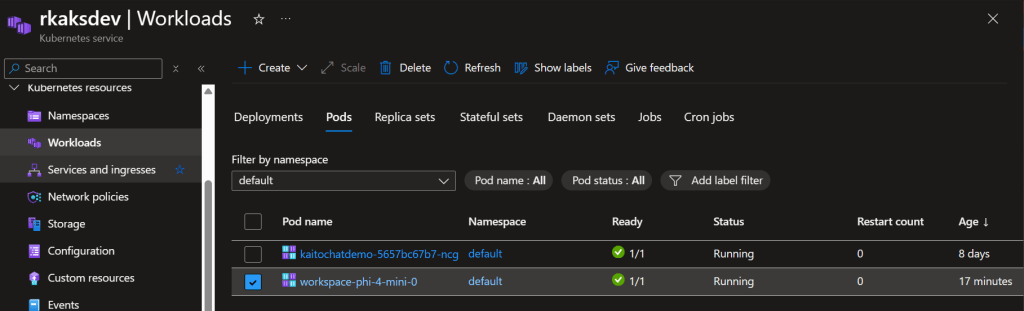The workspace Phi-4 model inference served as a Kubernetes pod.