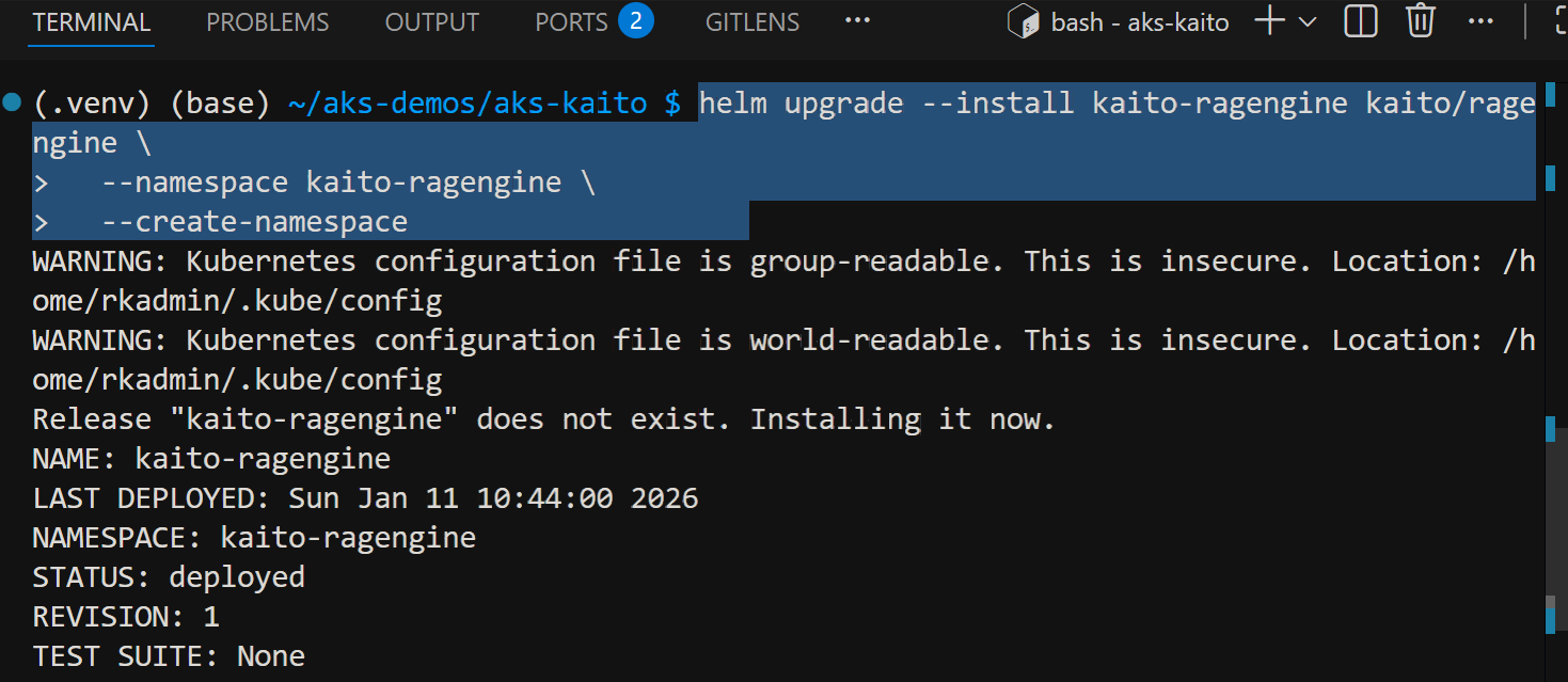 helm upgrade --install kaito-ragengine kaito/ragengine \